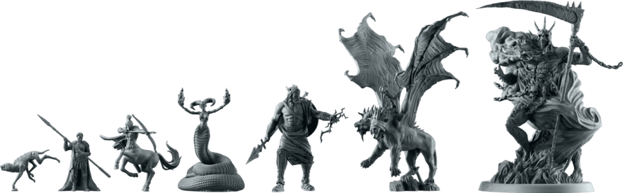 В подготовке к игре каждый игрок выбирает армию из одного божества, монстров, героев и отрядов. Статисткики персонажей (божеств, монстров, героев) прописанны на игровых планшетах, статистики отрядов на картах отрядов (миниатюрных версиях планшетов).