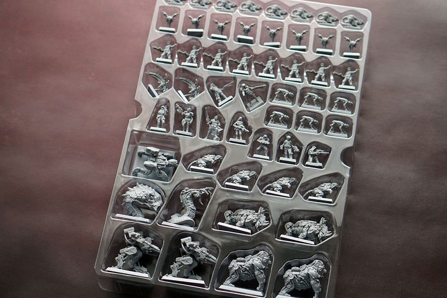 Качество пластиковых миниатюр добротное, однозначно выше фигур от Fantasy Flight, Flying Frog, но ниже CMON. Общую стоимость пластика однозначно сократили за счёт того, что фигурки лишь условно отображают некоторых противников. К примеру разнообразные бандиты с разной экипировкой, отображены одними и теми же фигурками.