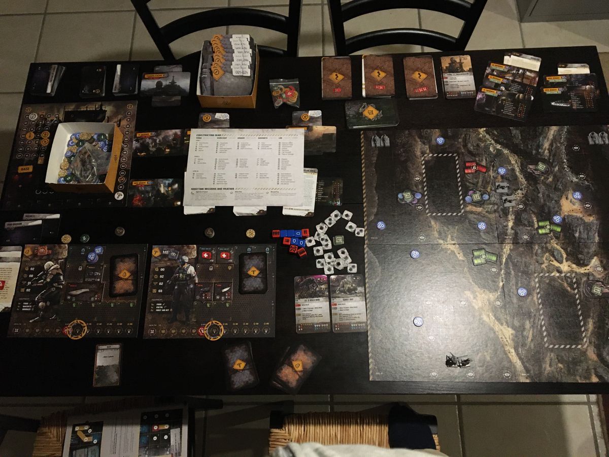 Логистически игра не блещет, для расклада игры необходимо довольно много места на игровом столе, игра на двух персонажей полностью занимает игровой стол 200см х 120см. Удобных решений для хранения компонентов не предусмотрено, и уместить игру в игровой коробке после распаковки, на мой взгляд нереально, если сохранять органайзер для моделей.
